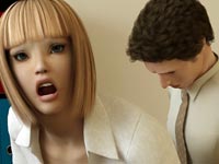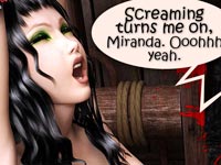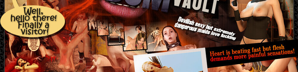 In this set of 3D cartoons we see a continuation of the story of Natalie – a young girl selling cookies that got trapped in a BDSM dungeon and was tortured by her mistress Beverly who enjoyed using different kind of equipment on her guest. When Beverly got tired and Natalie thought the moment when she would be released was close – there was another visitor that decided to join the party. With appearance of Doug Natalie realized her hope of being released was lost – and she was right. The man was there for anything but fooling around, and started his session with using a branding iron on Natalie's smooth skin, then whipping her into unconsciousness. All the exquisite tortures tried on Natalie were, however, just a preview of what was coming next…